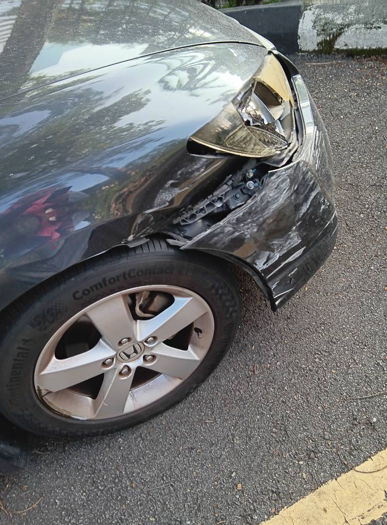 Tiba-tiba, keretanya dirempuh dari arah belakang dan kereta tersebut menghentam sebelah kanan depan keretanya.