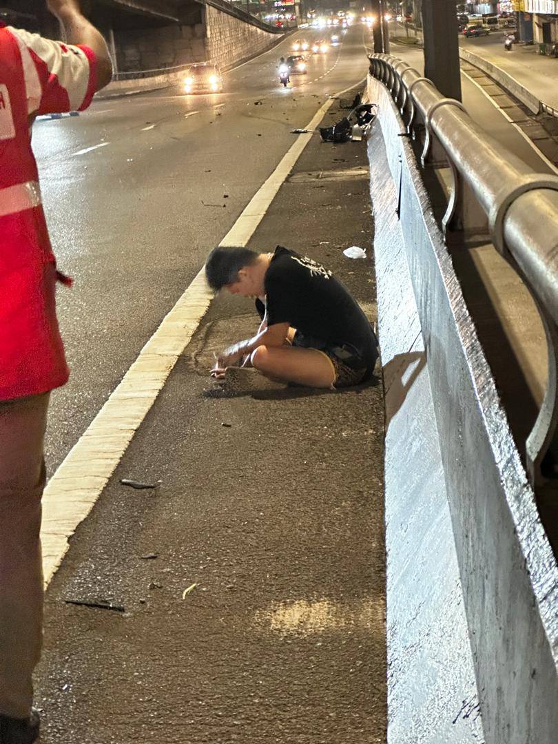 "Menurut paramedik, pemandu mabuk (berdasarkan gaya percakapan & bau) dan hanya mengalami luka di dahi," tulisnya.