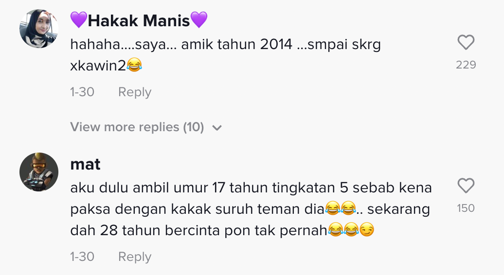 "Saya ambil tahun 2007. Sampai sekarang belum kahwin" – Netizen