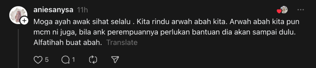 Dalam sebuah perkongsian di Thread, seorang wanita membuka kisah hidupnya yang cukup meruntun jiwa tentang bagaimana ayahnya menjadi tulang belakang baharu setelah pemergian arwah suami.