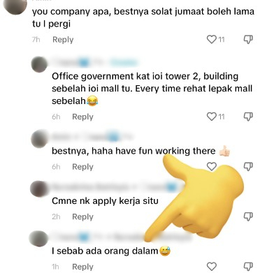 Dipercayai bekerja di IOI City Mall Putrajaya, wanita itu menjawab persoalan yang ada di ruangan komen tentang bagaimana dia memohon kerja di situ.