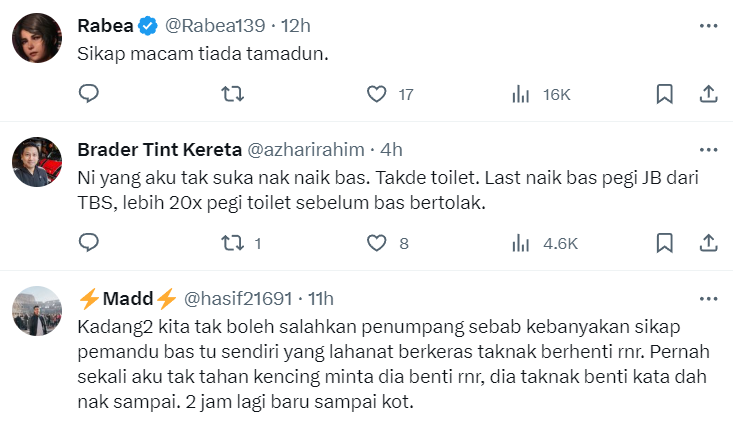 Baru-baru ini tular sebuah video di platform X yang memaparkan seorang lelaki dipercayai pendatang asing dimarahi oleh pemandu bas ekspress gara-gara didapati melepaskan hajatnya dalam bas.