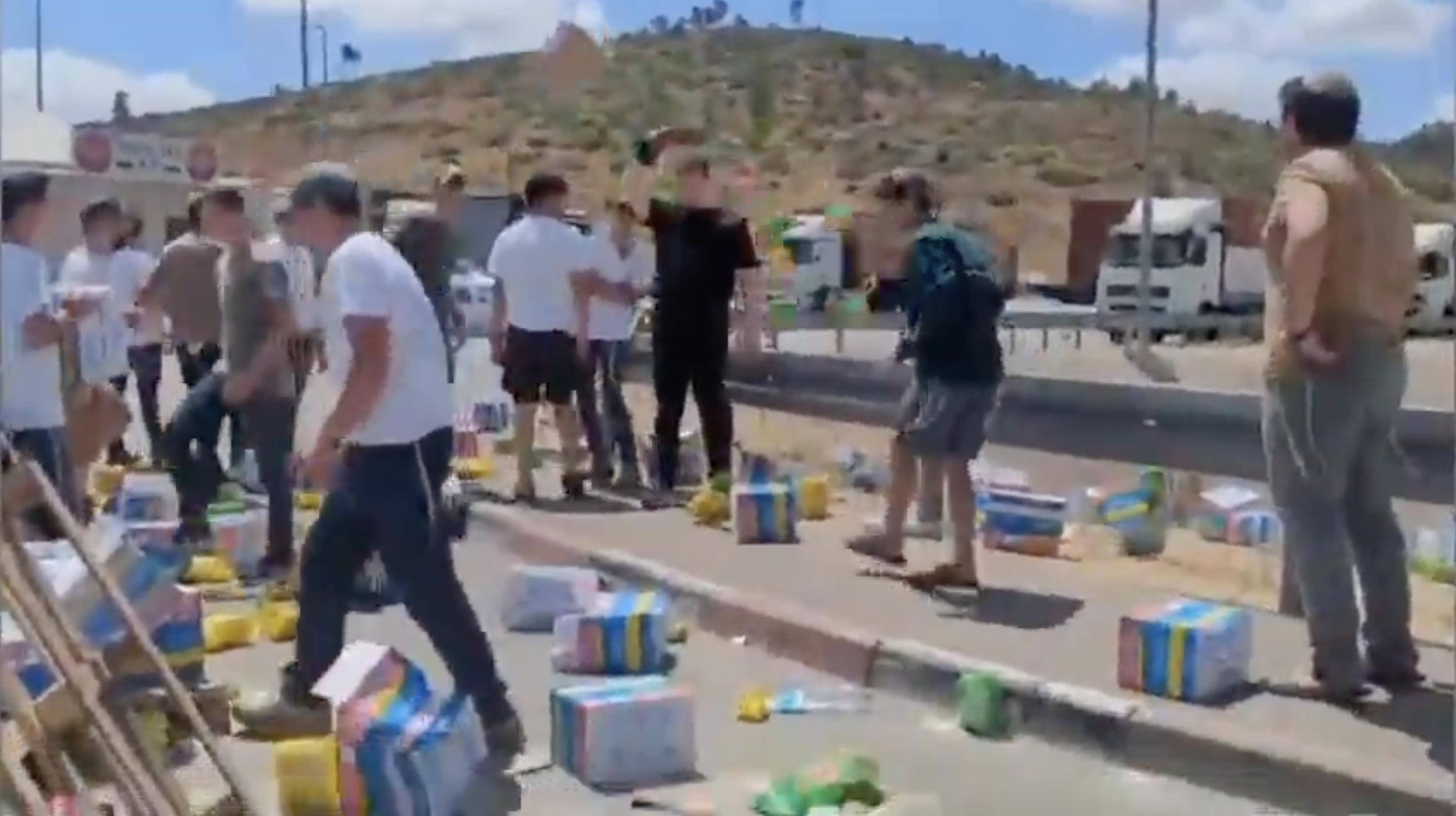 Tular sebuah video memaparkan penunjuk perasaan Israel bertindak menyekat trak bantuan yang menuju ke Gaza