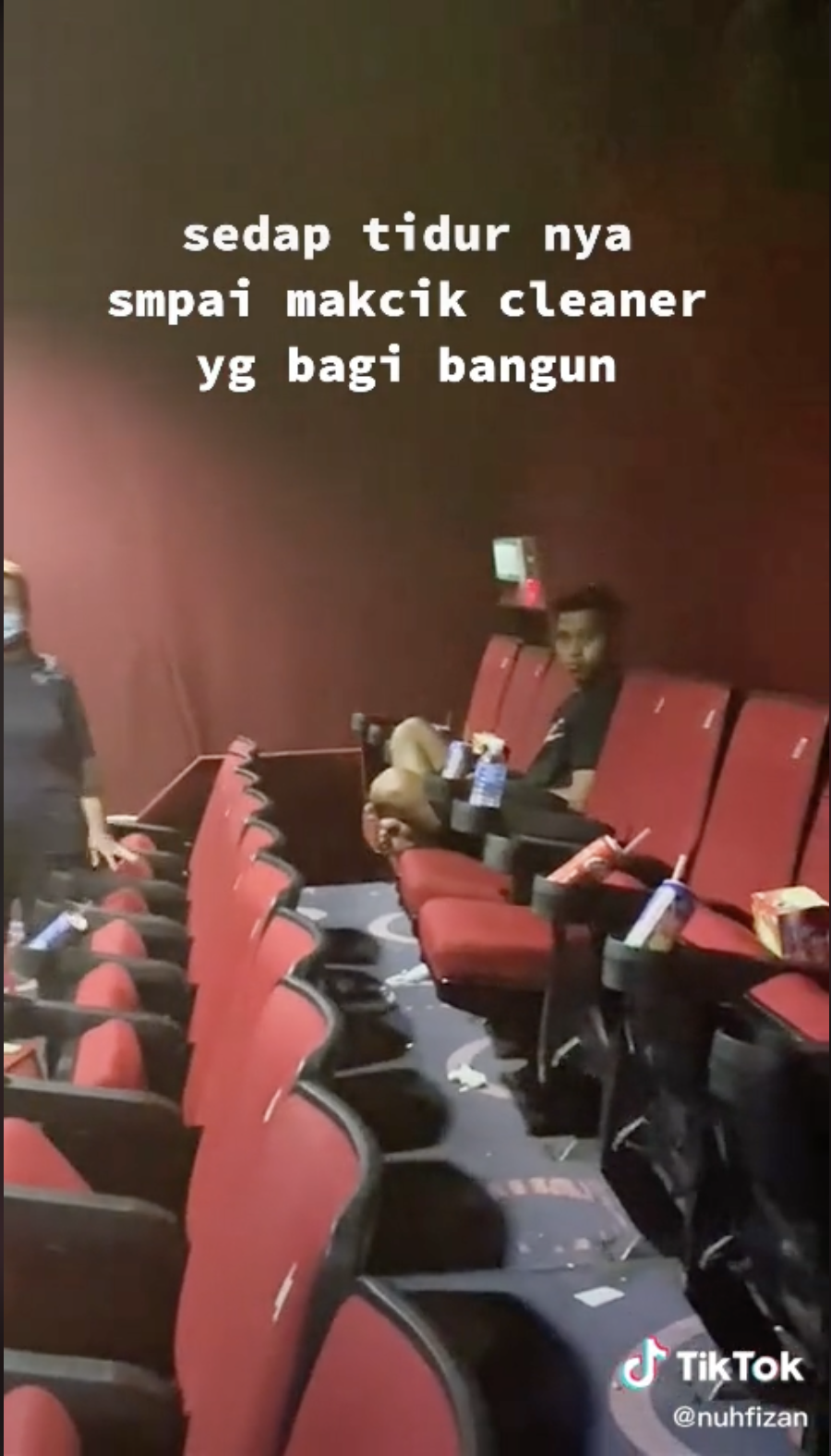 Menerusi video tersebut, kelihatan seorang lelaki tertidur di dalam panggung wayang yang tidak dikenal pasti.