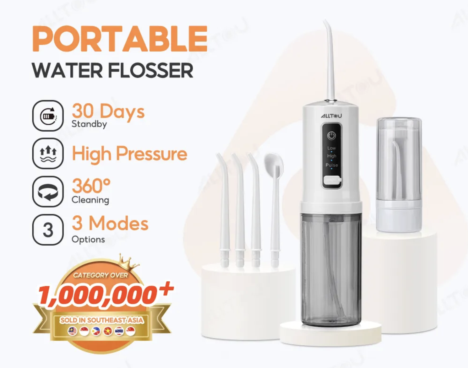 This water flosser delivers targeted cleaning with three modes: gentle, pulse, and strong. Its 0.6mm high-voltage pulse water flow is designed to flush out food debris effectively, while the 360° rotating nozzle helps reach tight gaps around braces, bridges, and hard-to-clean areas.