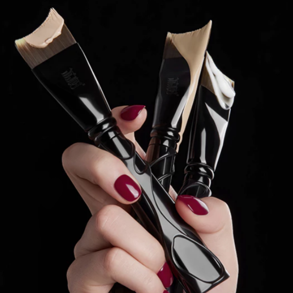 This ultra-thin, L-shaped brush is curved to follow every contour from nose to jawline, delivering a streak-free, flawless foundation finish. Its soft, lightweight bristles glide smoothly over the skin for buildable coverage without cakiness, making application effortless.
