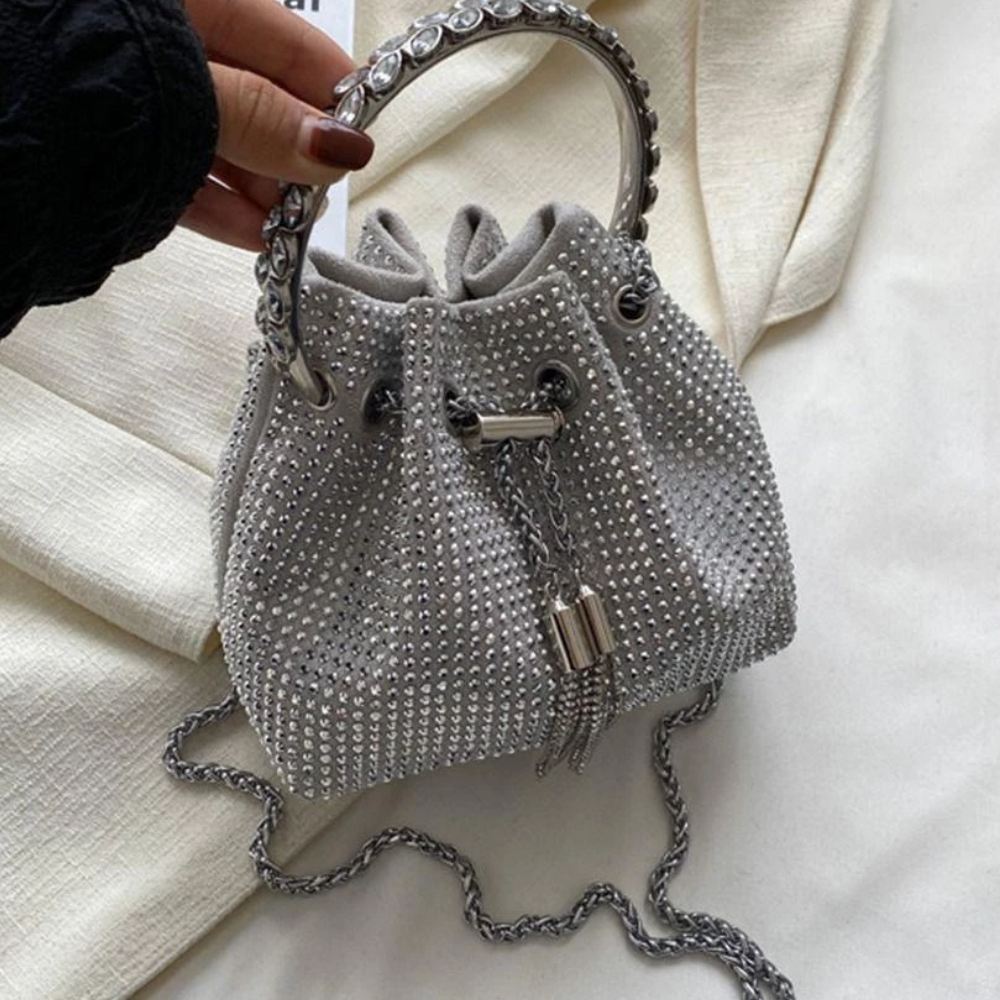 For girls who want something chic, elegant and luxury, this rhinestone clutch bag is the perfect balance between elegant and modern. With its well-defined shape and metal ring accents, it gives off that "expensive look" minus the hefty price tag.