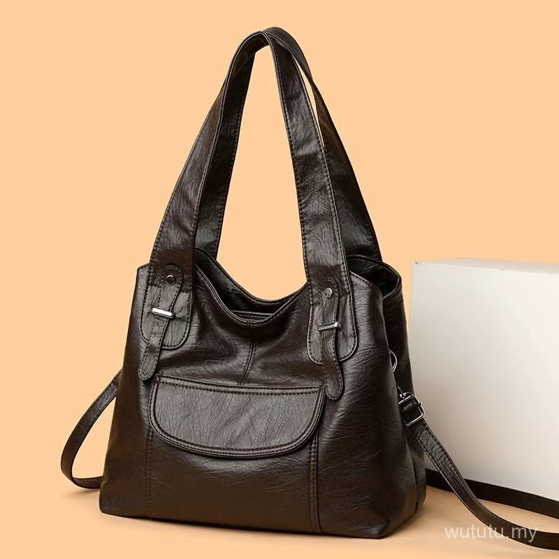 This retro-inspired tote bag is crafted from soft leather and designed for versatility. With multiple layers and a large interior, it easily accommodates daily essentials, making it ideal for work, errands, or casual outings.