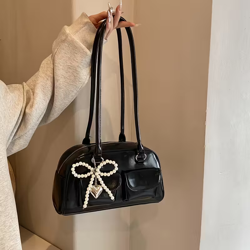 This IELGY underarm bag blends casual practicality with a chic, beaded bow accent. Made from PU leather, it's spacious enough to carry essentials like your phone, wallet, and small snacks, keeping everything organised with a secure zipper closure.