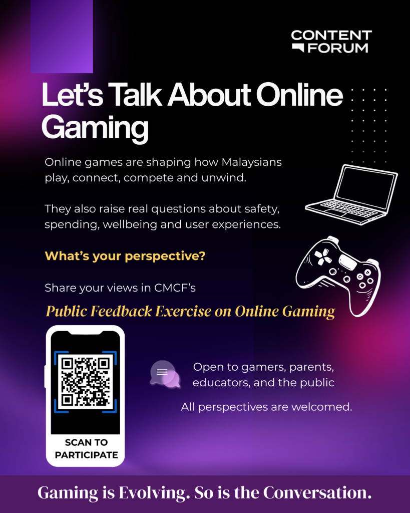 The survey is open to gamers, parents, educators, industry stakeholders and members of the public. It aims to gather insights on the realities, benefits and challenges of online gaming in Malaysia, which will help shape the upcoming Gaming Sub-Code.