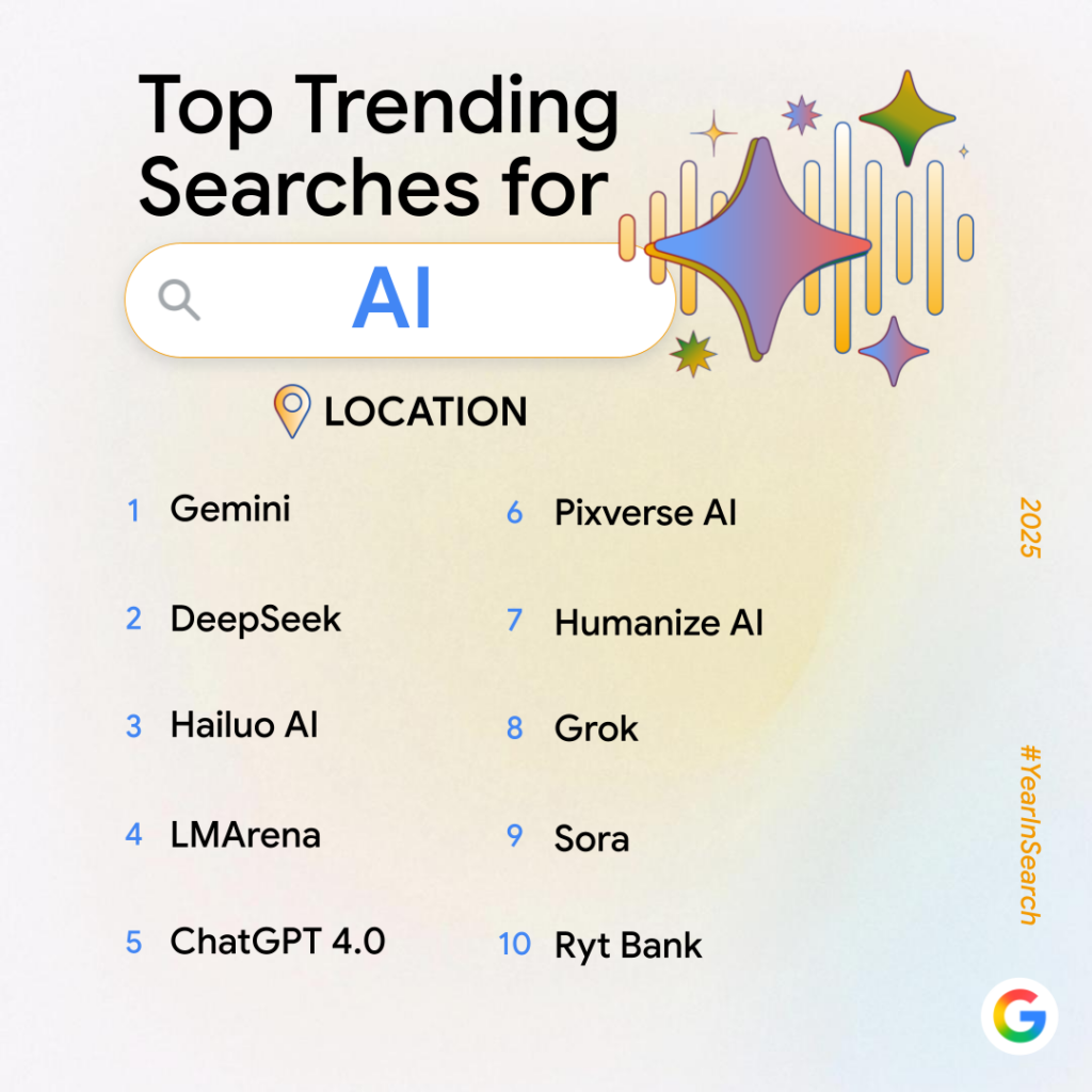 Google's AI assistant, Gemini, topped the overall trending list, signalling a massive shift in how people approach work, learning, and decision-making.
