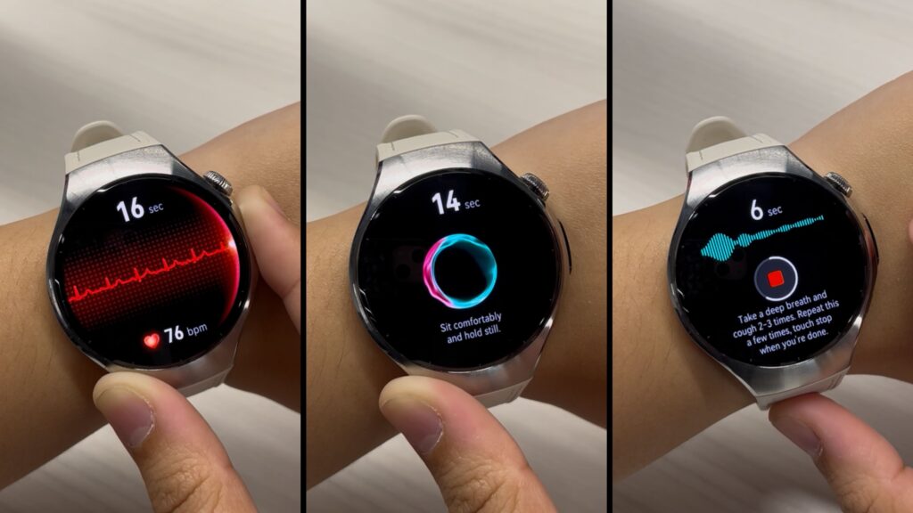 To launch it, simply hold the X-TAP sensor at the side of the watch face for three seconds. You will then be guided through three stages of tests: cardiovascular, basic health, and respiratory.