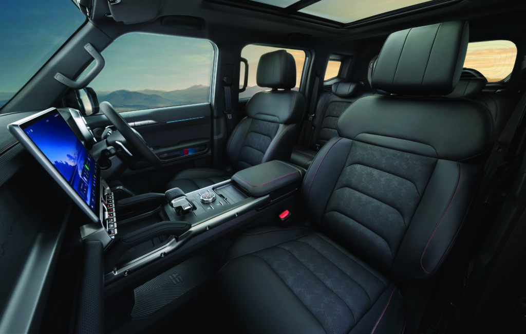 A 360-degree Panoramic View Monitoring System with a "transparent chassis" feature allows drivers to see obstacles directly beneath the vehicle, which is particularly useful during technical off-road manoeuvres.