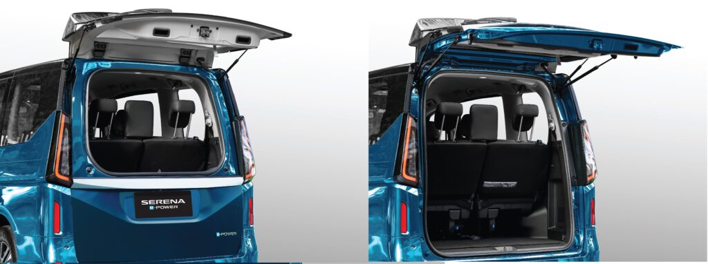 The rear is further distinguished by a revised light signature and prominent "SERENA" and "e-POWER" branding.